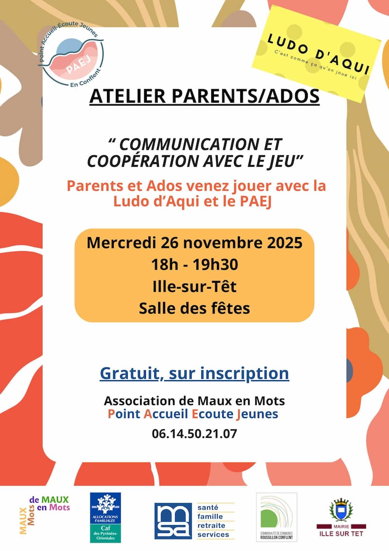 Le Point accueil écoute jeunes (et parents) de Maux en Mots et la Ludo d’aqui vous invitent à cette soirée autour de la relation parents-ados.